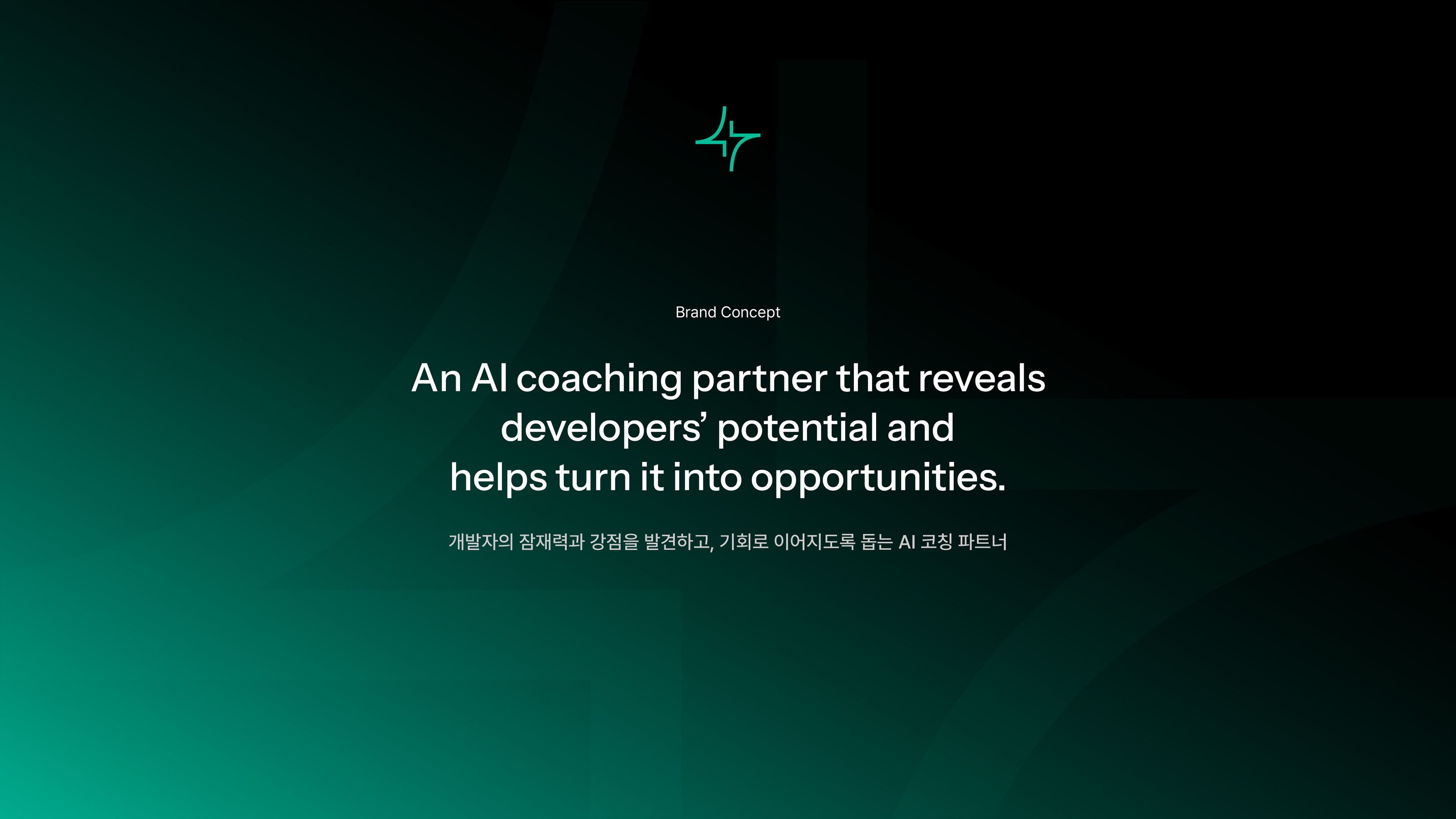브랜드 아이덴티티는 이 전략을 기반으로 구축했습니다. 로고 심볼은 그래프의 상승 곡선에서 출발해 성장과 진전의 흐름을 담았고, 반전된 대칭 구조를 통해 형성된 별의 형상은 사용자의 가능성이 드러나는 순간을 암시합니다. 컬러 시스템은 블랙 기반 위에 그린과 민트 계열을 중심으로 구성해, 디지털 환경에서도 명확함과 신뢰감이 함께 느껴지도록 설정했습니다.